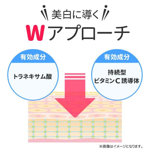 新たに配合*された抗炎症有効成分「トラネキサム酸」がシミの元となる情報伝達にアプローチし、メラニンの生成を抑え、シミ・そばかすを防ぎます。