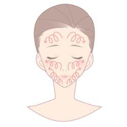 メイクや汚れとなじませ、その後、水またはぬるま湯で十分に洗い流します。
